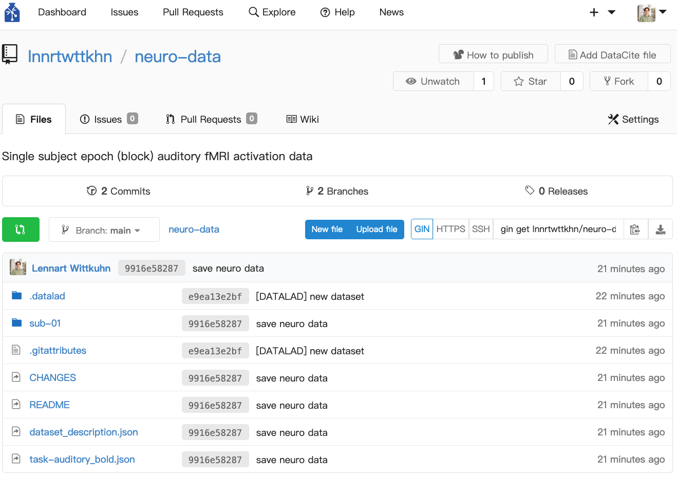 1datalad push --to owncloud-gwdgdatalad push to push the dataset contents to ownCloud. For details on datalad push, see the command line reference and this chapter in the DataLad Handbook.