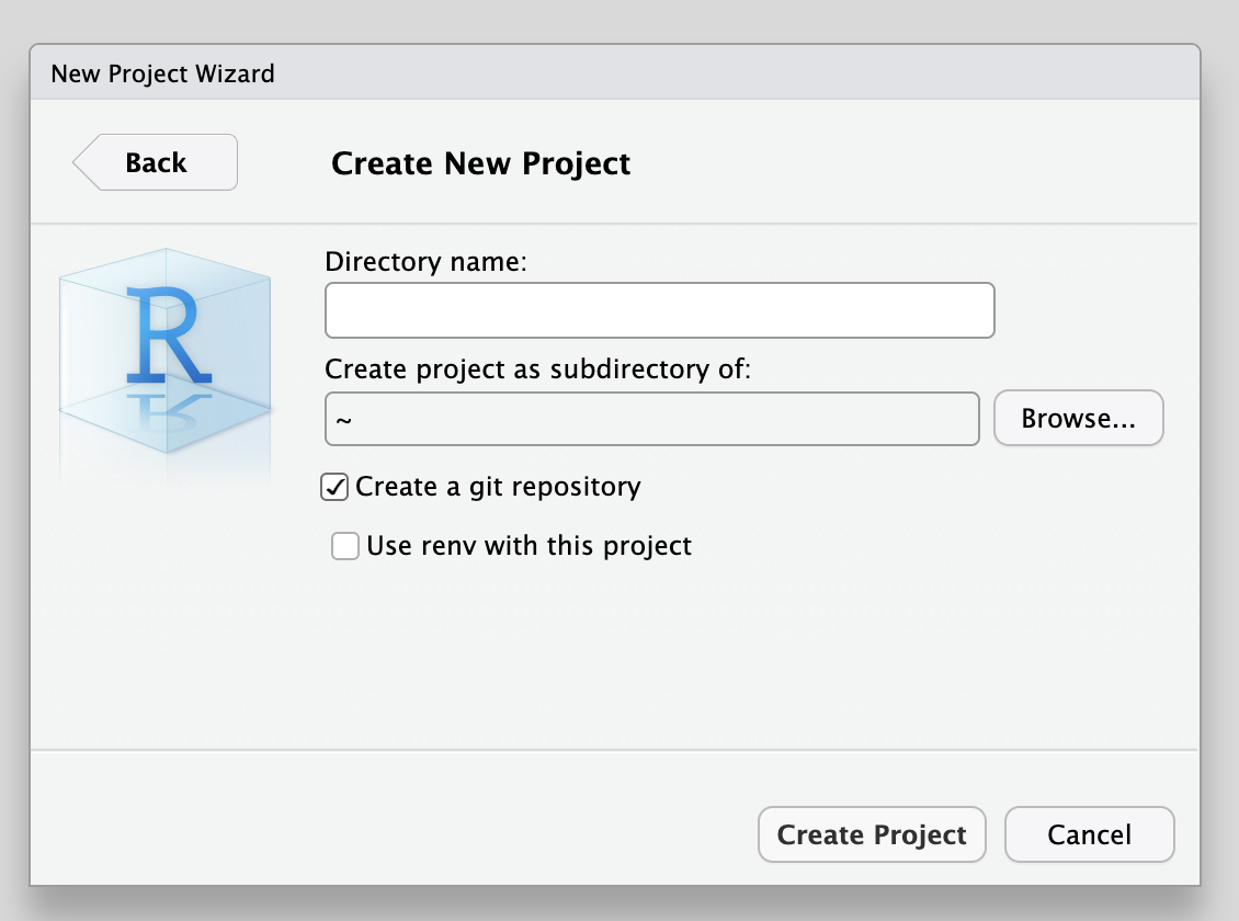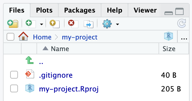 RStudio will create a new folder for your project and set R’s working directory to that location. You will see two files in the new project folder: