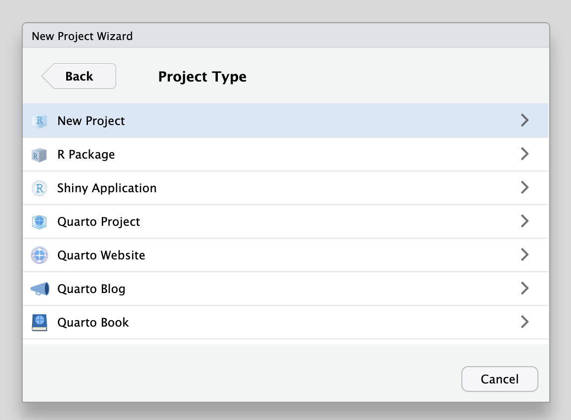 In the Project Type screen, select New Project.